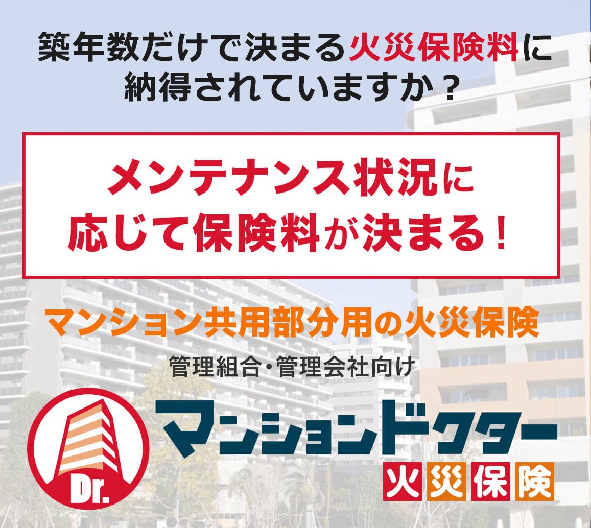 マンション管理組合の皆さまへ 築年数だけで保険料が上がるのは納得できない。 メンテナンス状況に応じて保険料を決定してほしい。 そんなご要望に対応できる保険がござい…